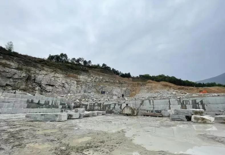 泾县中村隶属安徽省宣城市泾县云岭镇,这里除了长有茂密森林的大山,还有寸草不生的石山,那些露出地面光秃秃的石头,其实就是大理石或方解石,石材是泾县中村丰富的矿产资源。据调研组了解,在泾县中村石材产业清理整顿后,当地盛产泾川白玉的矿山,每年准许开采量6万立方米,