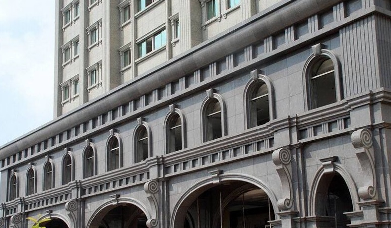 挂线:按设计图纸要求,石材安装前要事先用经纬仪打出大角两个面的竖向控制线,最好弹在离大角20cm的位置上,以便随时检查垂直挂线的准确性,保证顺利安装。竖向挂线宜用ф1.0-2钢丝为好,下边沉铁随高度而定,一般40m以下高度沉铁重量为8-10kg,上端挂在专用的挂线角钢架上,
