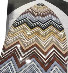 图10为深圳福田喜来登酒店大堂异型圆弧板加工而成的波打线。