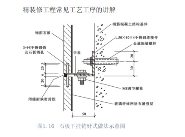干挂石材节点施工工艺说明: