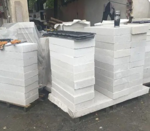 加工:用仿形机或人工制作成V型/L型或圆弧形,路沿石的一种。