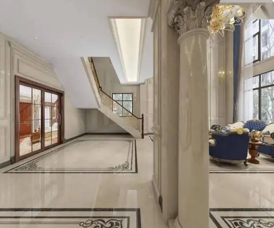 色轮上的红、橙、黄等为暖色;青、蓝、紫等为冷色。暖色和冷色在人的心理和视觉上都会产生不同的效应。暖色可以使人产生兴奋,热烈的气氛;而冷色则产生幽雅、宁静的气氛。石材的颜色很丰富,暖色系石材有桃花红石材、杜鹃红、松香黄、莎安娜米黄等;冷色系的石材有丹东绿、蓝海、海洋冰蓝等。米黄色系的石材色调柔和、温暖,应用在不同风格的室内空间可以产生不同的室内气氛,如莎安娜米黄在欧式风格中表达了一种雍容含蓄、高贵端庄、雅致细腻的室内氛围;在现代风格中则表达了一种惊艳、温馨及超凡的贵气,可以营造一个轻松而温馨的家居环境。
