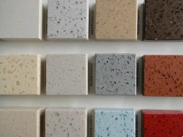 至于石英石的颜色,邓惠青介绍,石英石本身应该是无色透明的,现在市场上看到的各种颜色都是人为添加的。一些厂家会在制作过程中添加上碎玻璃类的物质,让整个板材看起来十分闪亮,“不过这仅影响外观,不影响人造石英石的质量。”而且,石材颜色的深浅也与本身质量无关。