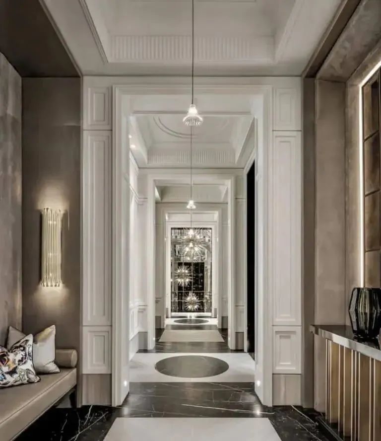 石材的天然纹理和色泽,使用在门套上呈现出整体感。整个空间似乎被石材连接到了一起,高级的质感无疑提升了整个空间的气质。
