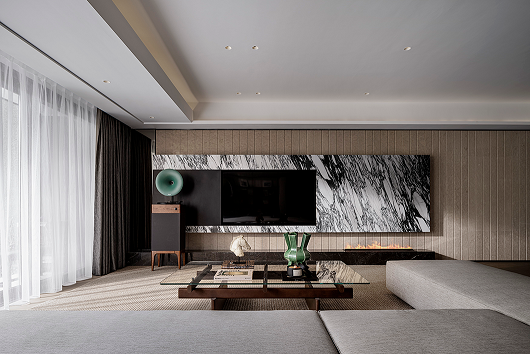 灰色大理石低调沉稳,用来做电视背景墙时,则可以极速的提高居家的空间质感,