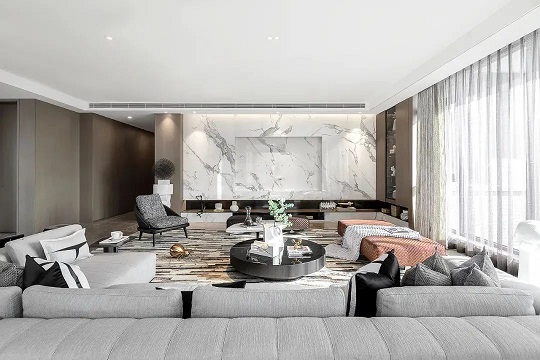 电视墙或墙面造型的石材一般需要等地面铺贴完成,吊顶完成,且木工基础做好之后复尺下单,