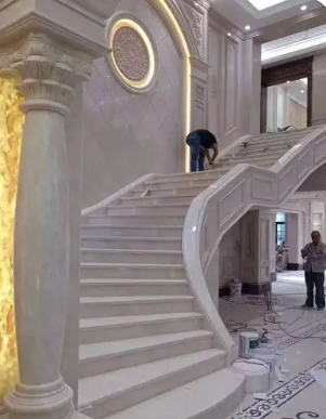 旋转楼梯如何安装?详解石材旋转楼梯现场施工安装过程图。