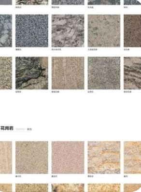 纯大理石常呈雪白色,含有杂质时,呈现黑、红、黄、绿等多种色彩,并形成各种花纹、斑点,形似山水,如花如玉,图案异常美丽,花岗石是应用历史最久、用途最广、用得最多的岩石。花岗岩的颜色一般为浅色,灰、灰白、浅灰、红、肉红等较为常见。