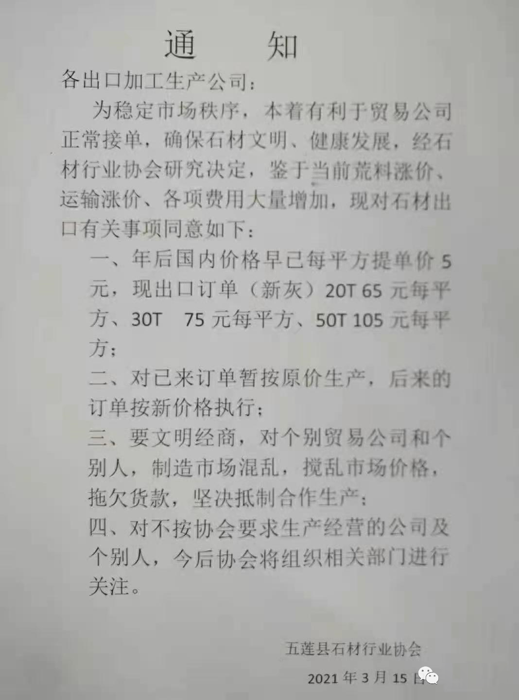 为稳定市场秩序,本着有利于贸易公司正常接单,确保石材文明、健康发展,