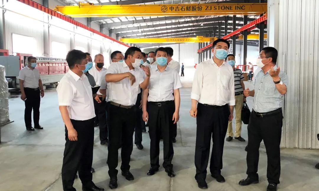 领导一行考察了中吉石材股份有限公司,并实地考察了吉林白麻绿色矿山建设情况。中国北部(蛟河)石材循环经济产业园自2019年7月30日盛大奠基以来,蛟河上下聚力演绎了令人瞩目的“蛟河速度”——项目落地近一年间,产业园各大项目先后投产,除了有“万马奔腾”的声势与速度,入驻企业注重高质量发展与绿色发展,切实高效推动天岗石材的循环产业布局实现闭环,更彰显了石材循环经济产业园的价值所在。