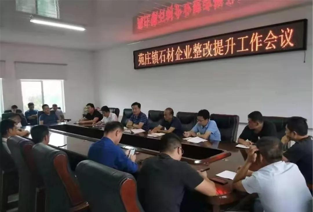 苑庄镇召开石材企业整改提升工作会议。镇党委副书记、镇长王强主持会议,党委委员、副镇长郭顺利,人大副主席郭永杰,社会公共服务中心主任杜广伟,环保站、执法中队相关负责同志,