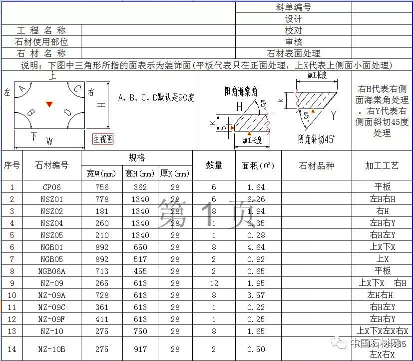 这个表格,基本能涵盖常用平板石材的加工,包括小面处理、海棠角、各种角度的斜切方式。