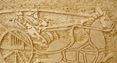 图1 用洞石喷砂工艺制作的苏秦驾车装饰壁图