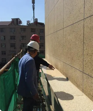 (1)大面石材安装完成后,需要对局部位置进行洗缝,