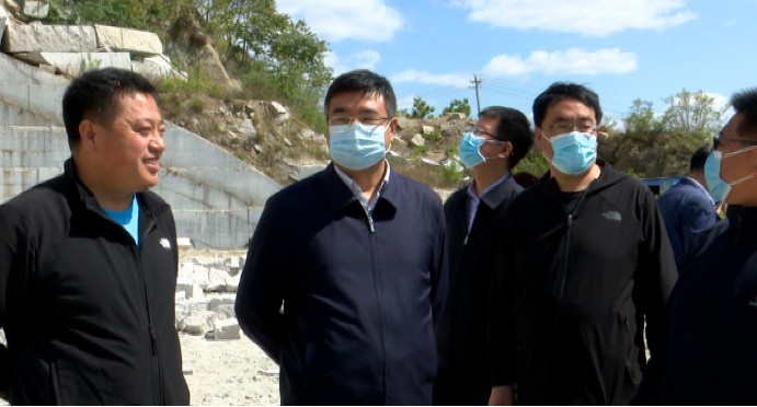 河北省青龙县县委书记李耀滨深入肖营子镇温杖子村实地调研石材、砂石骨料集中开采区情况,县委常委、县委办主任邱中凯参加调研。