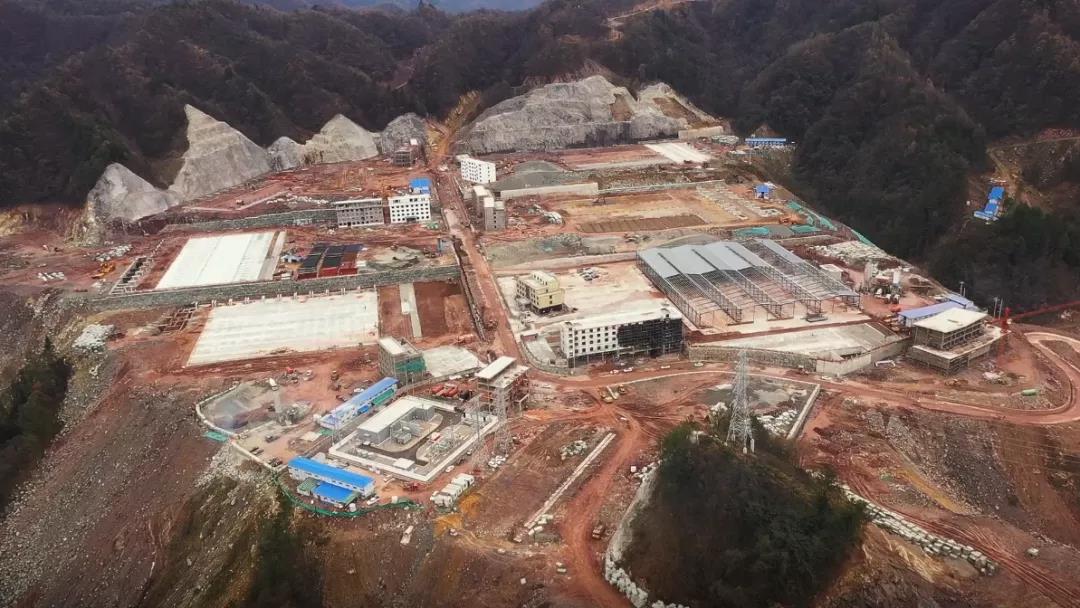 在万源市鸿辉石业有限责任公司厂区施工现场,主体建筑已初具规模,