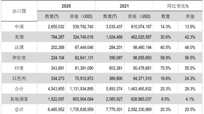 根据伊斯坦布尔矿产出口商协会(IMIB)的提供的数据,2021年土耳其石材出口额超过20亿美元,同比增长20.54%;