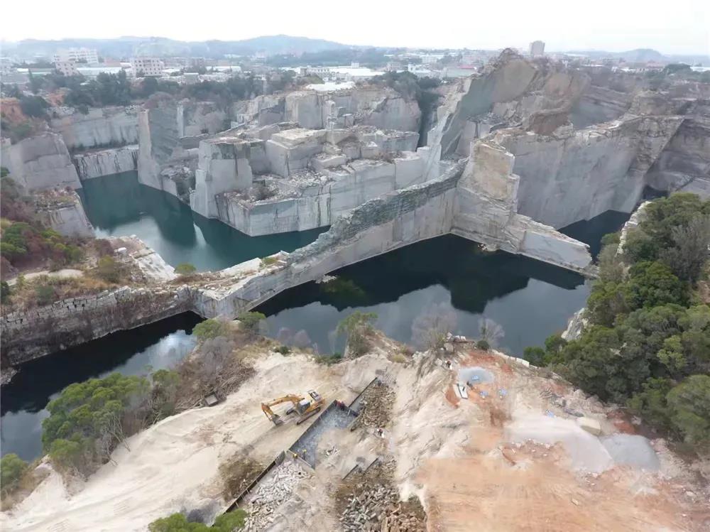 位于巴厝村党群活动中心南侧约50米处,一座面积约160亩的石窟废弃多年,三四处深坑连成一体,水积其中,石坑浅的30多米,深的则有近70米。石材转型退出之后,这里人迹罕至,石窟外,两扇铁门紧锁多年。