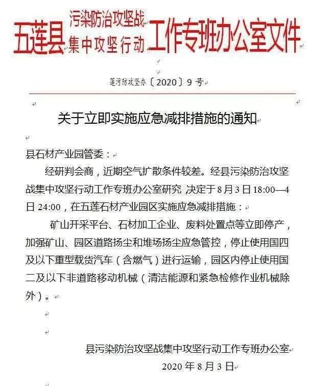 杏耀怎么样?经县污染防治攻坚战集中攻坚行动工作专班办公室研究,决定于8月3日18:00至4日 24:00,在五莲石材产业园区实施应急减排 措施: