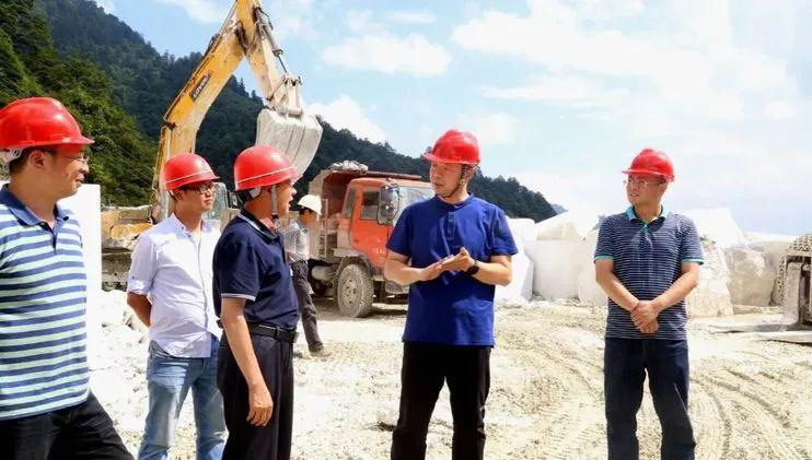 在宝兴县宇通矿业有限公司大理石矿开采平台,冯俊涛详细了解企业生产经营、