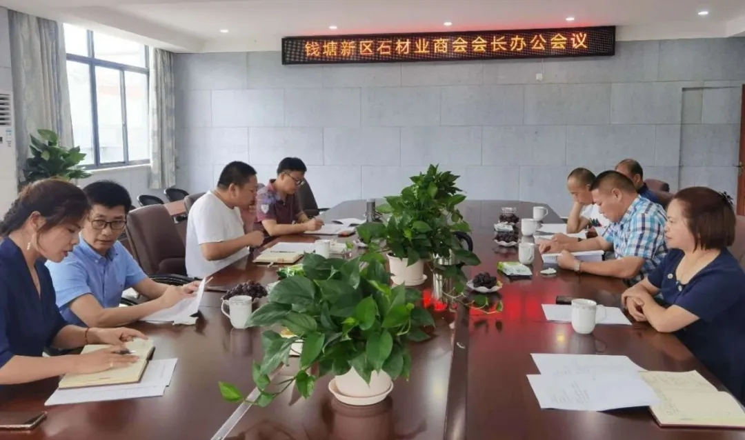 杭州钱塘新区石材业商会二次会长办公会议在商会会议室召开。