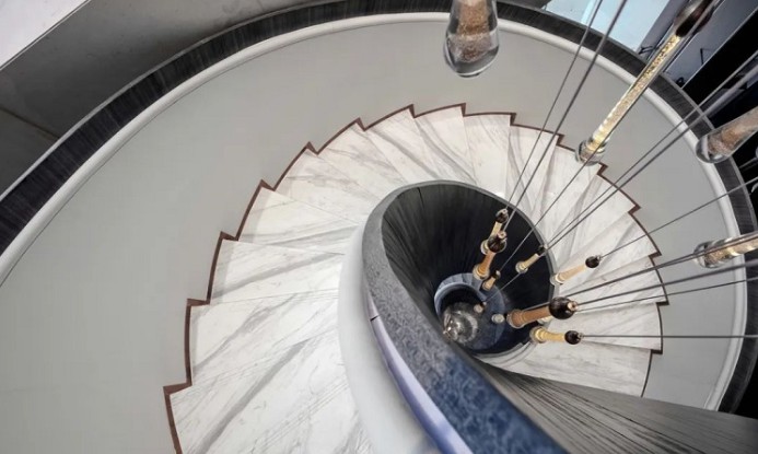 旋转楼梯是异型石材产品中加工难度最大的一种,它以精妙的结构造型备受推崇,又以繁琐复杂的施工工艺,让人止步这种矛盾的存在,稍有不慎会弄巧成拙。