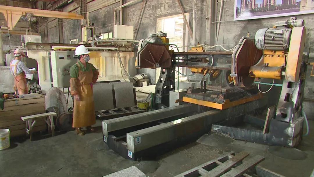 “我们去年在这儿搞了一个破碎厂,破碎厂把整个园区的废渣集中到里,统一成建筑用的砂石料,再把它销售出去。这样整个园区的废渣废粉,特别是石材行业的,基本上做到了循环利用。”