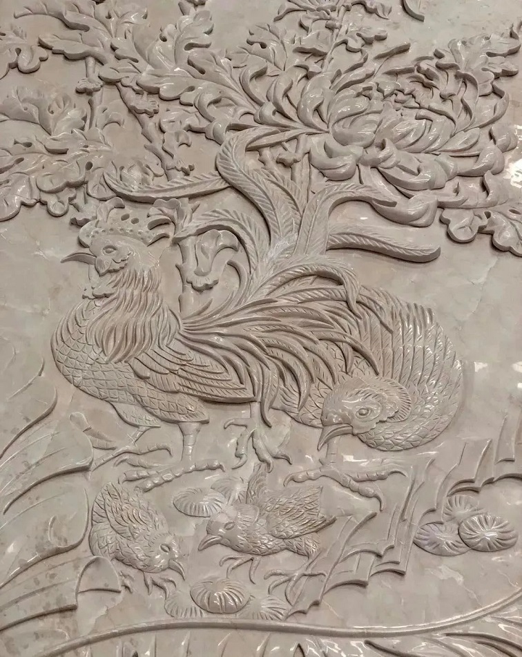 石材浮雕的作品可以说是雕塑与绘画结合在一起的一种雕刻品,可以使石材的一面或是两面成为观赏的雕刻品。