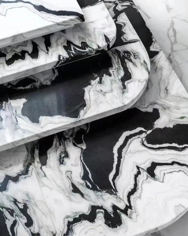 熊猫白板面光滑,行云流水,浑然天成,在众多奢石大理石中展现中国元素。