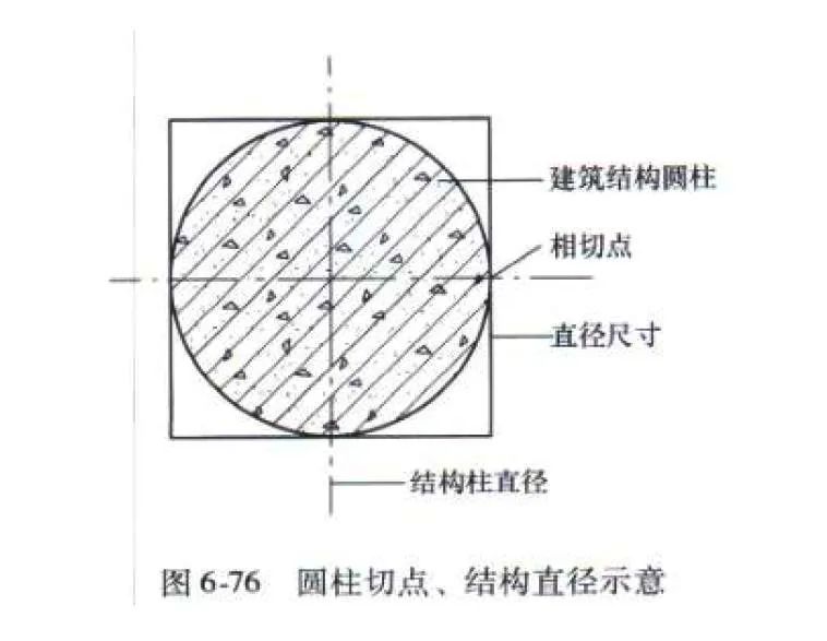 石材装饰柱的建筑基础结构,一般是有两种类型,第一建筑结构本身就是圆柱形(图6-76),第二就是建筑结构柱是矩形(图6-77)。