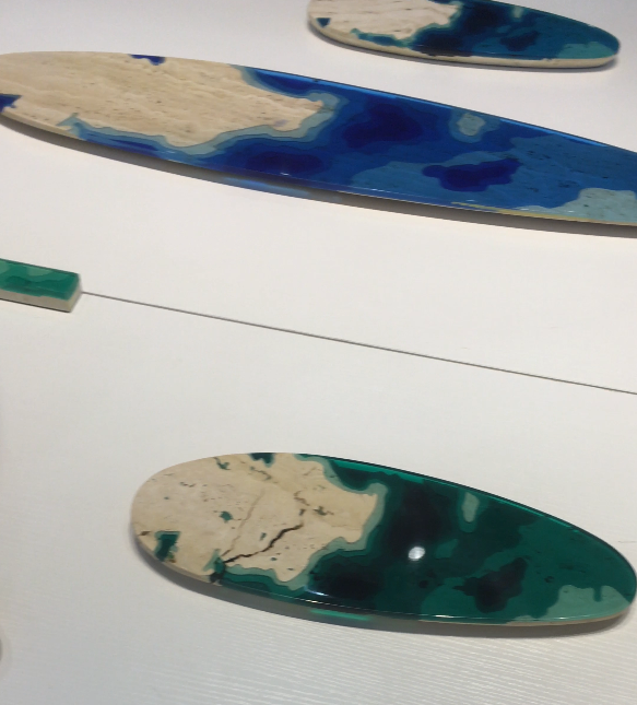 图1用为本届厦门国际石材展览会上用泼画的绘画艺术手法创作的各种石材泼画面表面的石材产品,令人耳目一新;图2为用泼画面表面制作的圆形台面板。流淌的颜色恣意奔放,通过颜色的深浅变化构成立体的山水画卷,有中国泼墨山水画的意境。