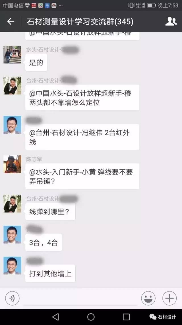 下面是鼎力大师和其他群友大师讨论石材技术和旋梯的聊天截图,和大家分享部分聊天记录.为了一点私密的保留,聊天记录的全名已经刷了墨水。