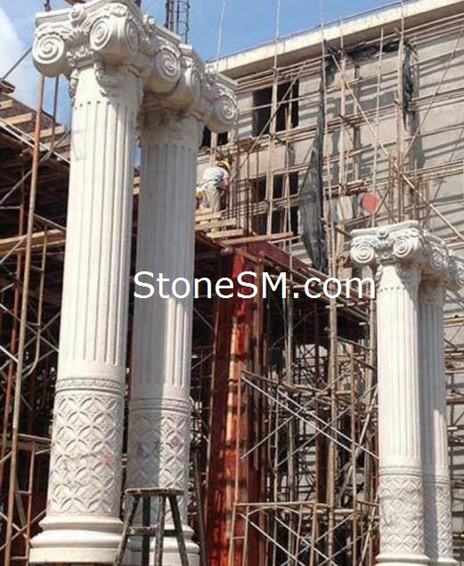 在骨架、防锈处理完成后开始安装罗马柱石材。首先把罗马柱运到现场,