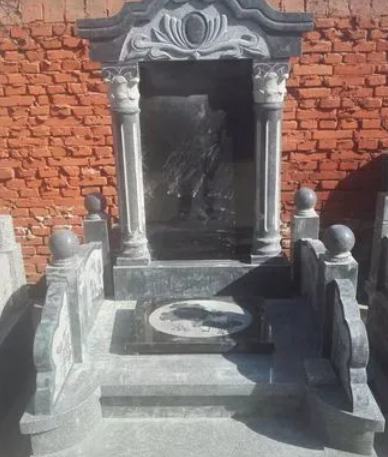 中式墓碑比日式墓碑简单,但墓碑表面常雕刻复杂的图案,如线雕、沉雕、浅浮雕、高浮雕、圆雕等。