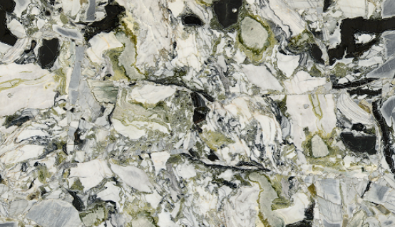 冷翡翠是中国最贵的大理石之一。产自云南,色泽淡绿,石质坚硬,纹理杂而不乱,极其优美,是最受欢迎的绿色大理石之一。因其矿山原因,价格非常昂贵。原板售价最高可达8000一平方,拼接板可达2000一平方。