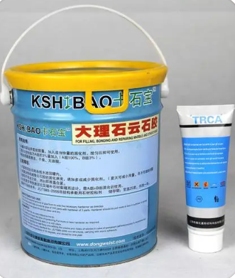 3、将调好的云石胶进行填充,由于云石胶完全凝固后会有一定程度的收缩,所以应使云石胶稍微高于石材水平面,这样不至于多次填充。