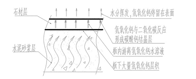 水将碱性物质带到石材表面后,迅速蒸发。碱性物质就会凝结、沉淀在石材表面,行程粉末状的物质。