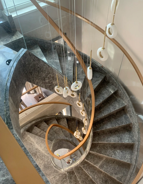 ● 大理石旋转楼梯踏步,是属于大理石石材的一种异型石材产品,其加工难度是属于难度程度最大的一种,它以精妙的结构备受建筑行业者所追捧,又以繁琐复杂的工艺技术使大多数人们望而止步。
