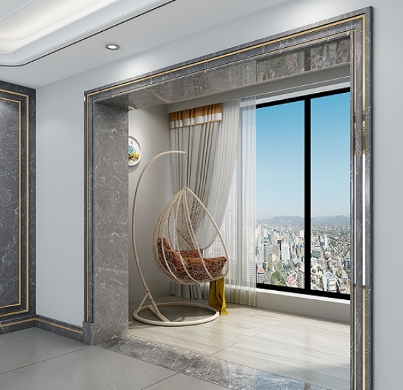 根据设计及施工实际情况确定石材门套的底边位置,在两条竖直线之间拉一条水平线。水平线和竖直线确定门套平面与两侧墙面平面应相稳合。