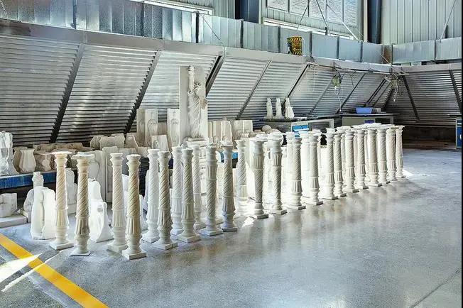 走进车间,一块块石料正被先进的设备加工成一个个精美的石材工艺品,各种废料随后又被加工成不同细度的细粉,用于生产各种化工填料。
