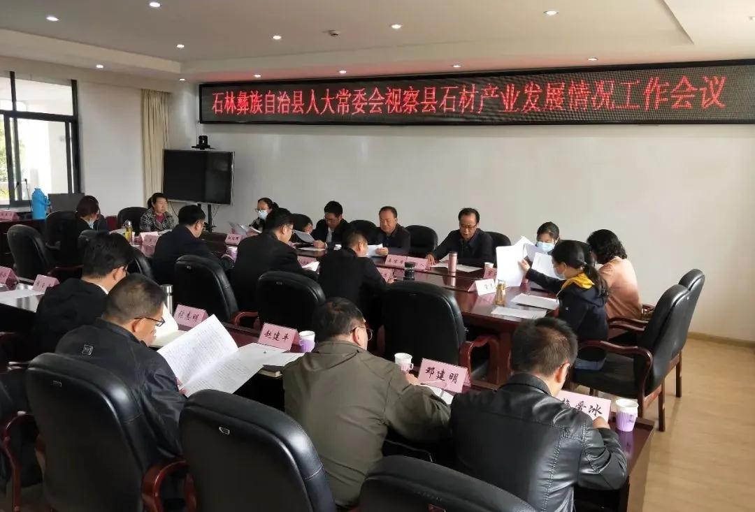石林县人大常委会组织部分县人大代表视察石材企业发展情况。