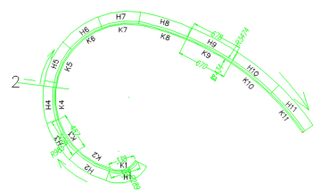 图5为一单半径旋转楼梯的弯位线条,共有3件,外半径442,内半径402,弯位线条的厚度从图6知道是40mm,考虑到弯位线条的扭曲余量,弯位线条料的厚度为40mm+52mm=92mm。由于的弯位线条料的厚度不是太厚,扭曲余量也不是很大,可以将3件弯线条的料合料加工,合料后用数控串珠绳锯切割圆弧板,见图4。开坯料尺寸为1175mm(高度尺寸)*(605+30)(弦长尺寸)*(149+30))(拱高方向),开料数量1件,开料体积V=0.13?。
