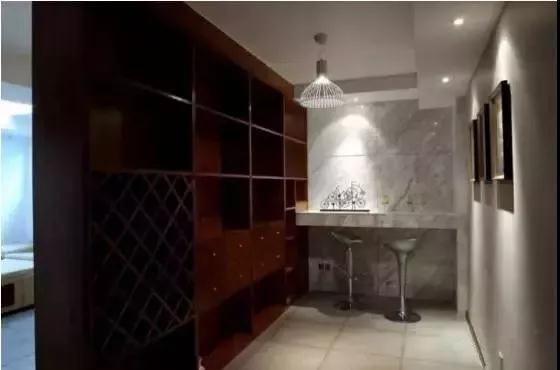 利用吧柜、吧台对空间实行分隔,适用于面积较大且要求有多种功能区域的室内。