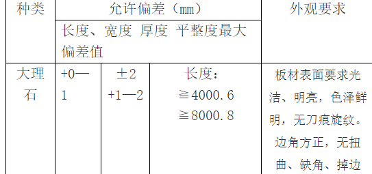 1、天然大理石的品种、规格切割应符合设计要求、技术等级、光泽度、外观质量要求,应符合国家标准《天然大理石建筑板材》的规定;