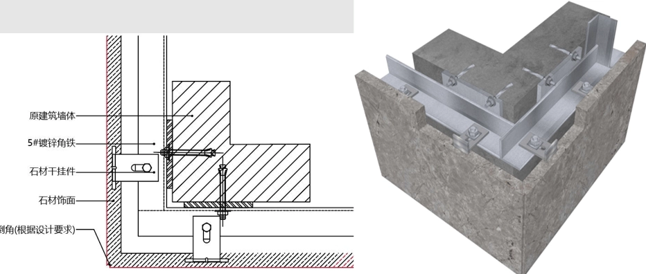 (2)石材干挂或安装,门边、框边切割面需抛光处理,钢架面采用防潮板包封。