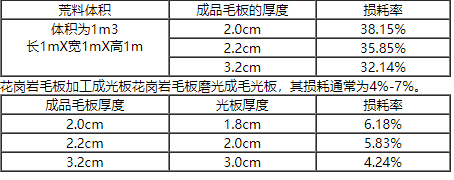 花岗岩荒料加工成毛板的损耗通常在30%-45%之间。