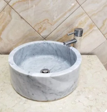大理石有高雅的光泽。由于石头有孔隙,所以维护大理石的光泽很困难。密封有助于防止石头吸收液体,但酸性液体如橙汁,柠檬,汽水,各种食品,以及常见的家居清洁剂都会腐蚀石材。基于这个原因,不要在大理石上使用酸性清洁剂。含微量酸性液体的湿玻璃会引起顽固水渍。为了避免水渍,每次使用之后要冲洗并擦干水槽。清除腐蚀和水渍的唯一途径是请专业人士重新打磨、重新抛光。常规护理时可使用软性的,含漂白成分的液体清洁剂或普通家用洗涤剂。